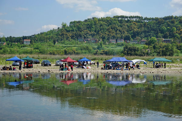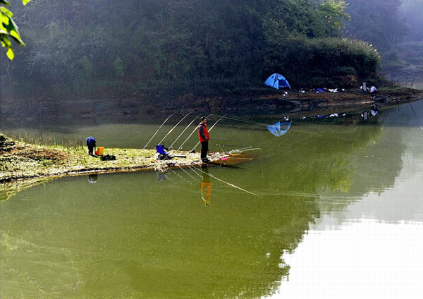 巴南区南湖湖水浩渺,鱼跃鸟鸣,很适合露营。露营地南湖渔村,位于湖中心鲤鱼鸟上,需划船接送。渔村房子以竹、木、石结构为主,农家味十足。鲤鱼岛上有一大片树林可露营,是纯天然氧吧。