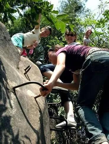 攀岩之际,大家说得最多的就是“抓紧扶手”、“踩稳没有”、“拉我一把呀”……