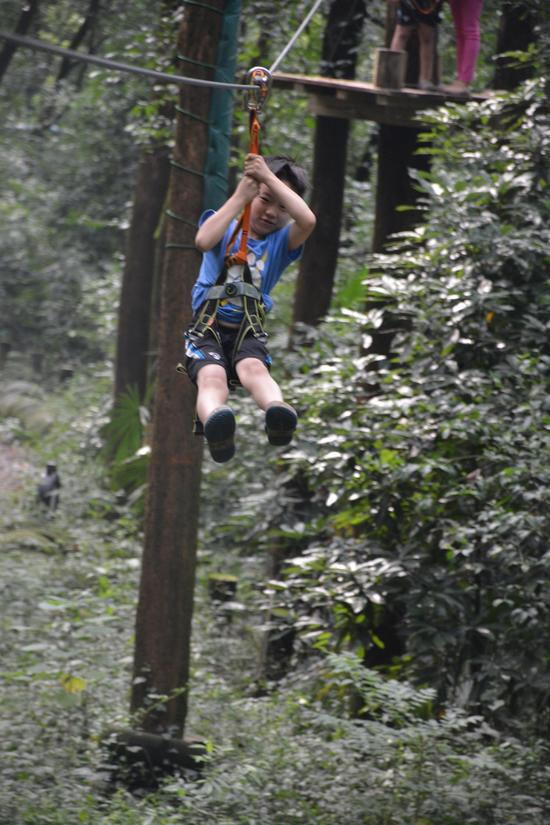 1、高空、速度是小朋友们所喜爱的户外丛林探险元素,除了这两个元素,铁山坪“飞越丛林”乐园也将力量、毅力加入到乐园的探险环节之中,让小朋友享受更为全面的挑战。