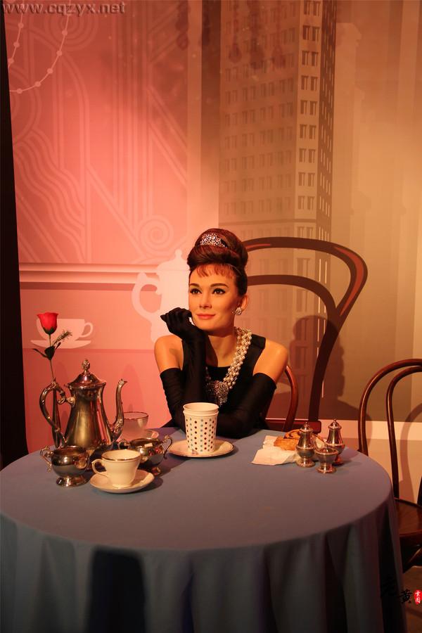 这尊赫本的像,是爱美之人不容错过的。这里设计的场景是一个餐厅饭桌上,即使是如此的环境,依然掩盖不了这位绝世美人的光芒。她右手轻托下颌,脸上是她标志性的微笑。赫本作为20世纪全球公认的美人,除了绝佳的五官外,更有她与生俱来的公主气质。在这尊蜡像中,我们也很轻易就能感受到。这座蜡像的照相方法,你可以和赫本摆出一样的pose,或者各种表情,当然夸张一点更好,在蜡像馆照相更多的应该是大胆的创意。