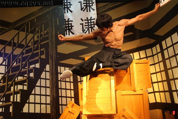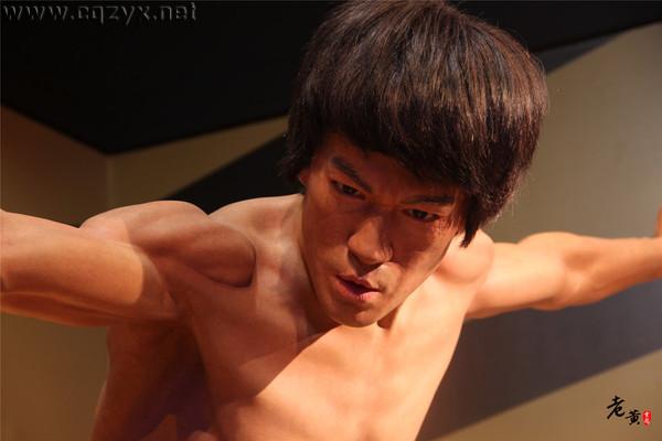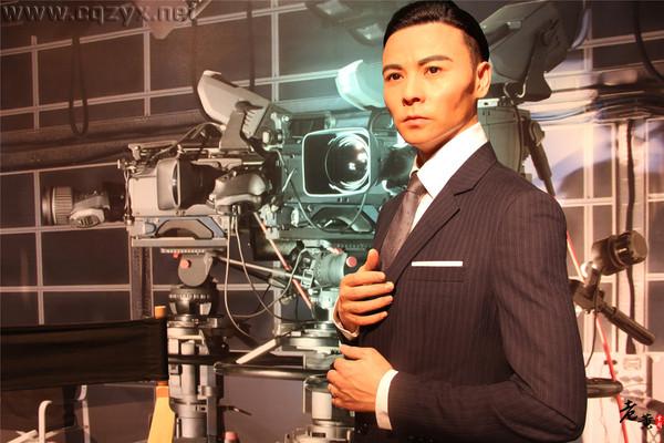 接下来是咱们重庆崽儿张晋的蜡像了。第一眼看到这形象,贼帅。细看下来也不赖,人物的轮廓和动作惟妙惟肖的。而配合这尊蜡像的背景是录影棚。这里的照相方法自然是冒充一下导演咯,拿着打板刁难一下这位武术明星吧!