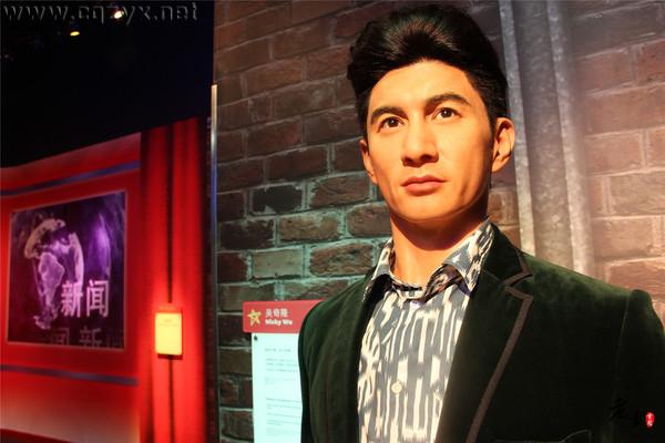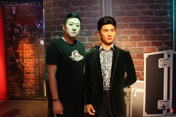 四爷吴奇隆的蜡像,相比之下就规矩许多。一身黑色礼服,标志性的发型,让人很容易就能识别出来。在四爷这里,我建议大家可以跟四爷比比帅,当然多半会大受打击。不过我教你,帅比不了,那就比高吧,说实话,四爷的身高很亲民,哈哈,这是秘密哟!