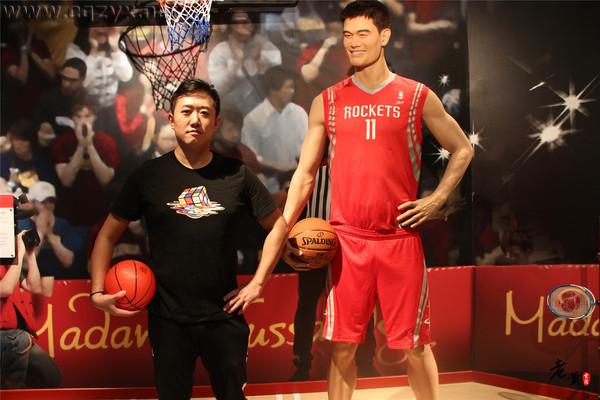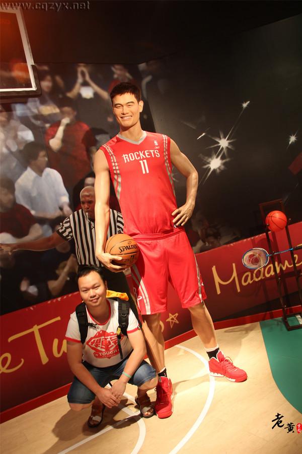终于来到了全馆最高的一尊蜡像了,这就是前几天正式进入NBA名人堂,亚洲首位状元秀,休斯敦火箭退役巨星姚明了。站在姚明的蜡像旁,一个字高!这等高的蜡像最大的好处就是能让游客和明星们比比肩。在姚明面前,我推荐的照相方式有,投篮,或者是和姚明比高!没错,就是和姚明比高,虽然这明显是自黑行为,但非常有趣,不信,看看这几图。