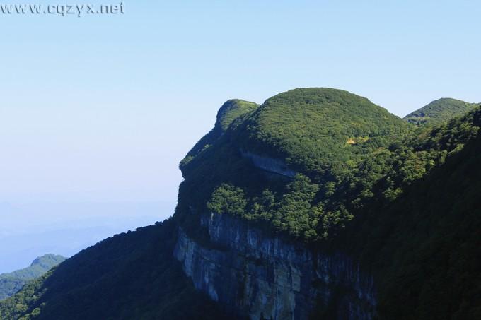 金佛山有两个游客中心,都可以上山, 一个是北坡, 一个是西坡。我们是选择从西坡上山的,坐的游客中心的车上山,然后坐的索道直抵达山顶 。这里说说这个索道,这个坐得挺惊心动魄的,这里的海拔好高哦,望下去全是悬崖绝壁! 索道坐完就抵达牵牛坪了,站在山崖的观景台上,就可看到大自然鬼斧神工下的天然杰作——金龟朝阳,山体形似等待千年的神龟,伸着脖子凝望远方,看日出、晚霞;望云海、佛光。
