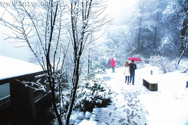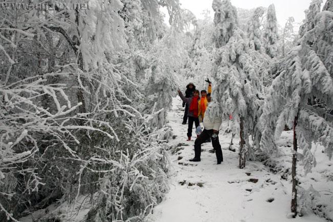 老黑山地区是一片巨大的原始森林,而且是南方较为少见的针阔混交林,几乎每一年的冬天都有雪花飞临,洁白无瑕的雪花让美丽的景区披上了一层优雅与神秘的气息,显得更加楚楚动人,银装素裹的冰雪世界让你惊呼自己如同置身千里冰封的北国风光!