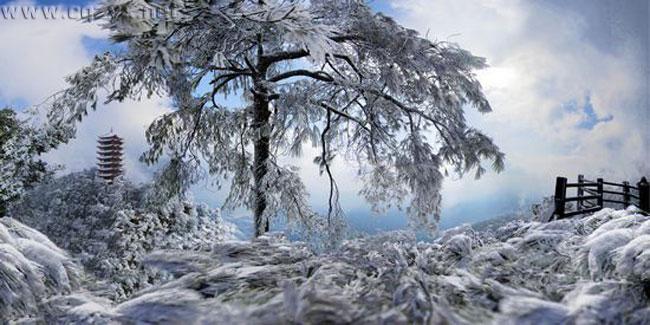 金佛山的美还在于它的雪景,这里年平均气温8.6摄氏度,最低气温摄氏零下10度左右,冬季降雪量大,积雪期长。降雪一般从11月中旬至第二年3月。由于海拔高、空气湿度大,极易形成冰棒、冰柱、冰瀑、冰挂,琳琅满目,千姿百态。尤其是金佛山雾淞,漫山遍野、气势宏大、晶莹剔透,有如能工巧匠精雕细刻的白玉和水晶工艺品。虽然有雪,但游客到达的金佛山脚,通常看见的只是一片片青翠的树木和一些风干的石头,一点也没有雪的影子,只有到达山顶后,你才能看见白雪茫茫的景象。