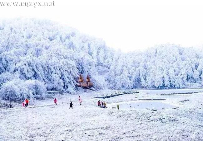 石柱黄水赏雪地有千野草场和大风堡两大景点,市民可以感受南国雪景特有的雾凇冰挂,也可以到游客中心租借专业的滑雪装备,和小伙伴穿梭林间,来一场“雪地CS”大战。