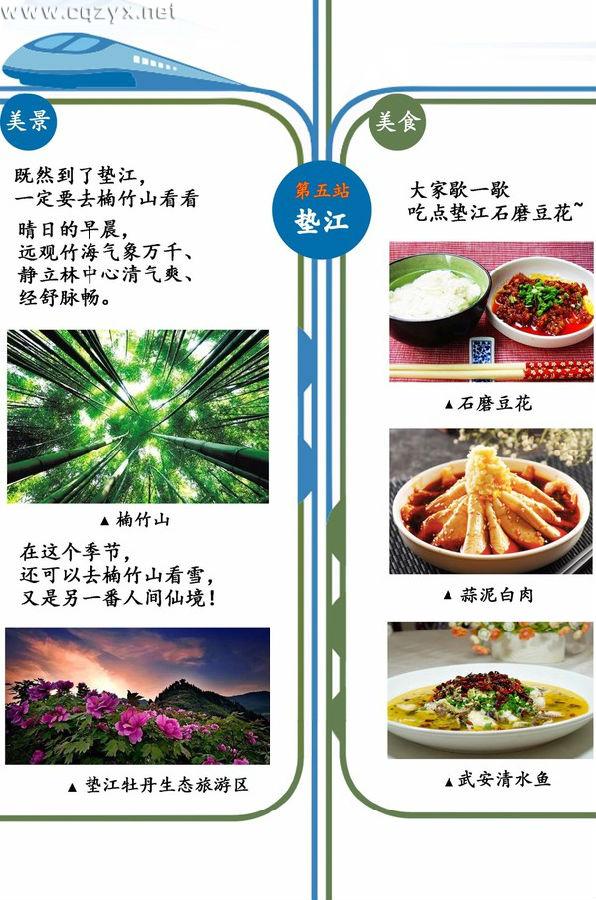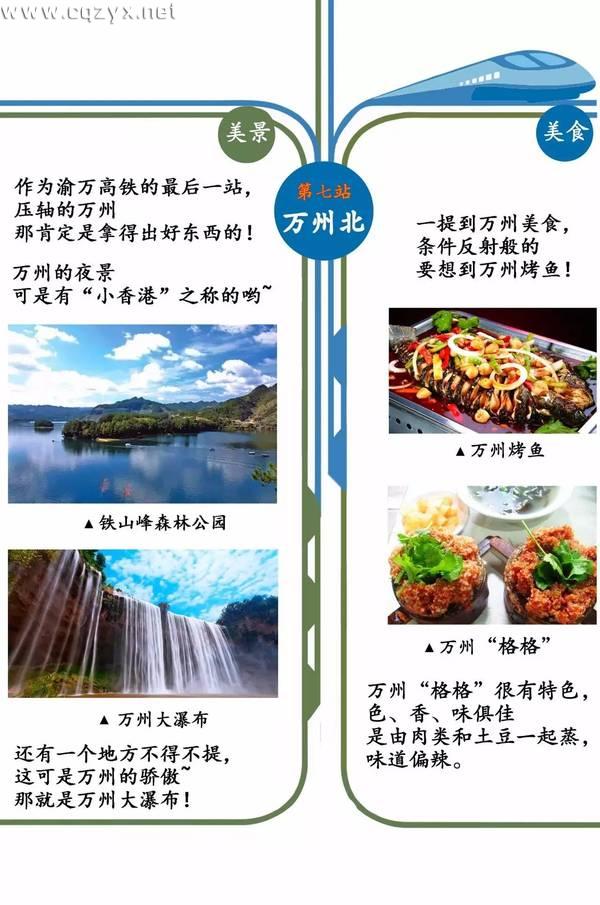渝万高铁的开通,牵动着全重庆人的心。随着交通的改善,那些“藏在深闺无人识”的美景也将走进大众的视野,渝万高铁沿途旅游景点有哪些呢?近日,在重庆市规划局、重庆市地理信息中心联合推出的《渝万高铁沿线美食景点地图》中,详细介绍了渝万高铁沿途7个车站附近的美景与美食,结合这份地图重庆自由行整理了一份详细旅游攻略,预订好车票,找个周末就可以出发去看看外面的世界了哦!