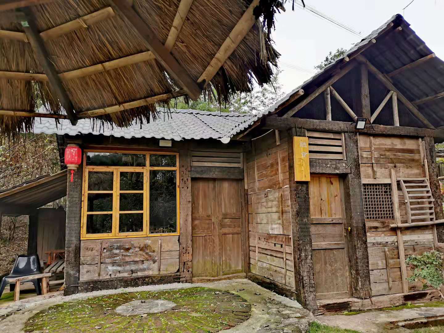 沿可以居大院左侧斜上坡,半坡上有三栋独立的玻璃茅草亭特色民宿房,朝阳而居,房名分别用缘来、无为和结庐来表述了悠然的宿主心境。右斜下坡是一条小径,道路两旁是各种花果树,树下是蔬菜地。过乡愁大道,是生态别院,共五栋并每栋分别独立成院,仅由名字就可以揣测出生态别院的所处环境了,河畔里、听风、揽月、沐雨、泛舟。