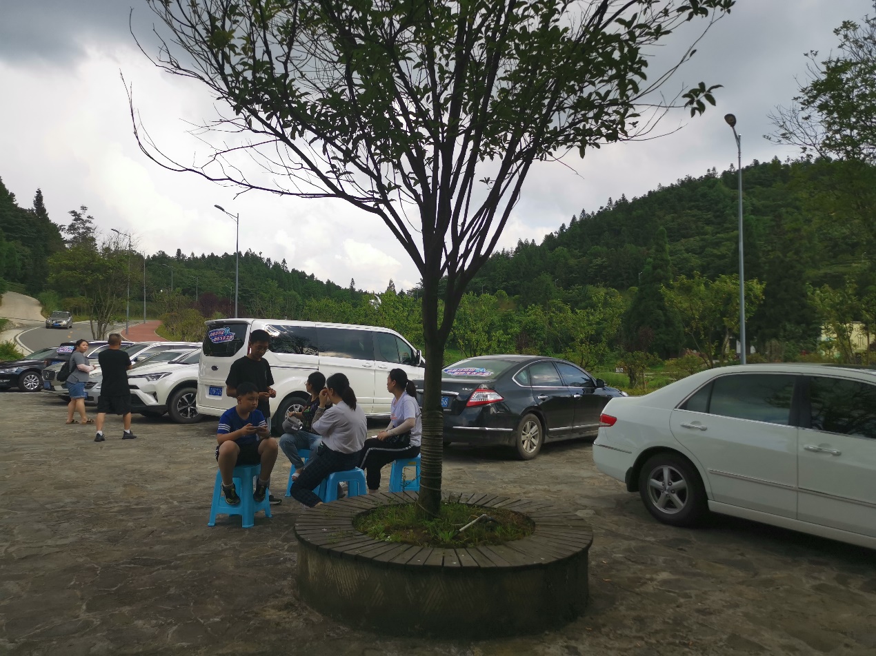 活动参与车辆在重庆武隆白马镇集合等待上山。