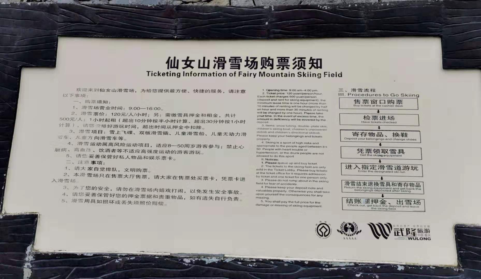 别看这滑雪圈平停地上样貌平平,从雪道上滑下来的时候,那可就真的是雪上飞碟了。下附仙女山滑雪场购票须知和滑雪场价目表: